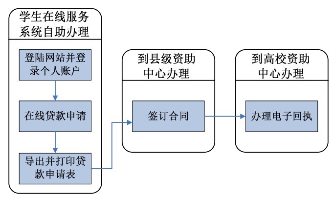 学生资助管理中心收到《贷款受理证明》和《回执单》后,集中为国开行生源地贷款学生办理电子回执。同时为农村信用合作社等银行办理的生源地贷款学生办理纸质回执单。